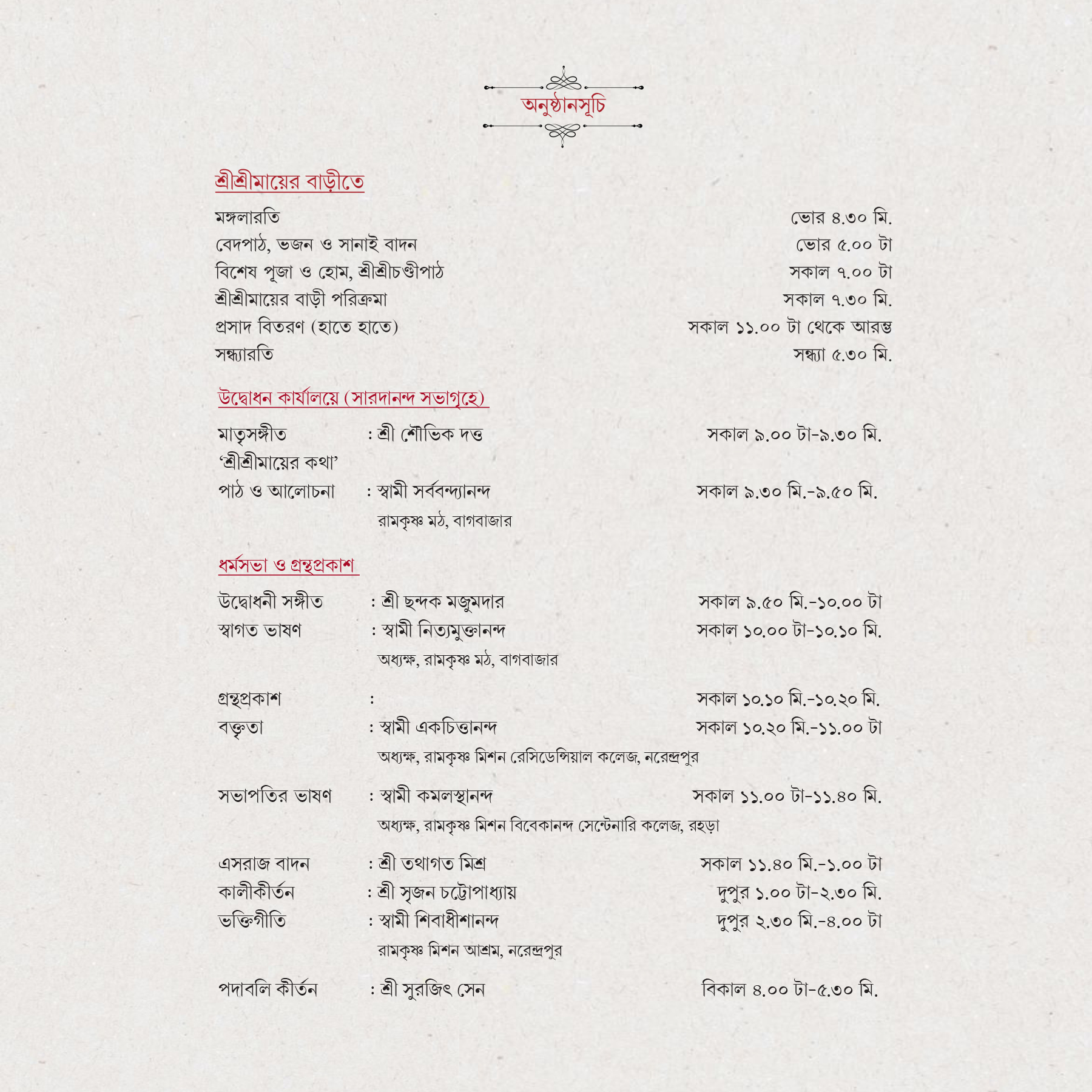 Ramakrishna Math, Bagbazar organizes various charitable activities throughout the year. Among them are distribution of clothes to the needy people, distribution of winter clothes, distribution of educational materials etc. The devotees are requested to extend their helping hand in all these activities of the monastery through financial donations as much as possible.