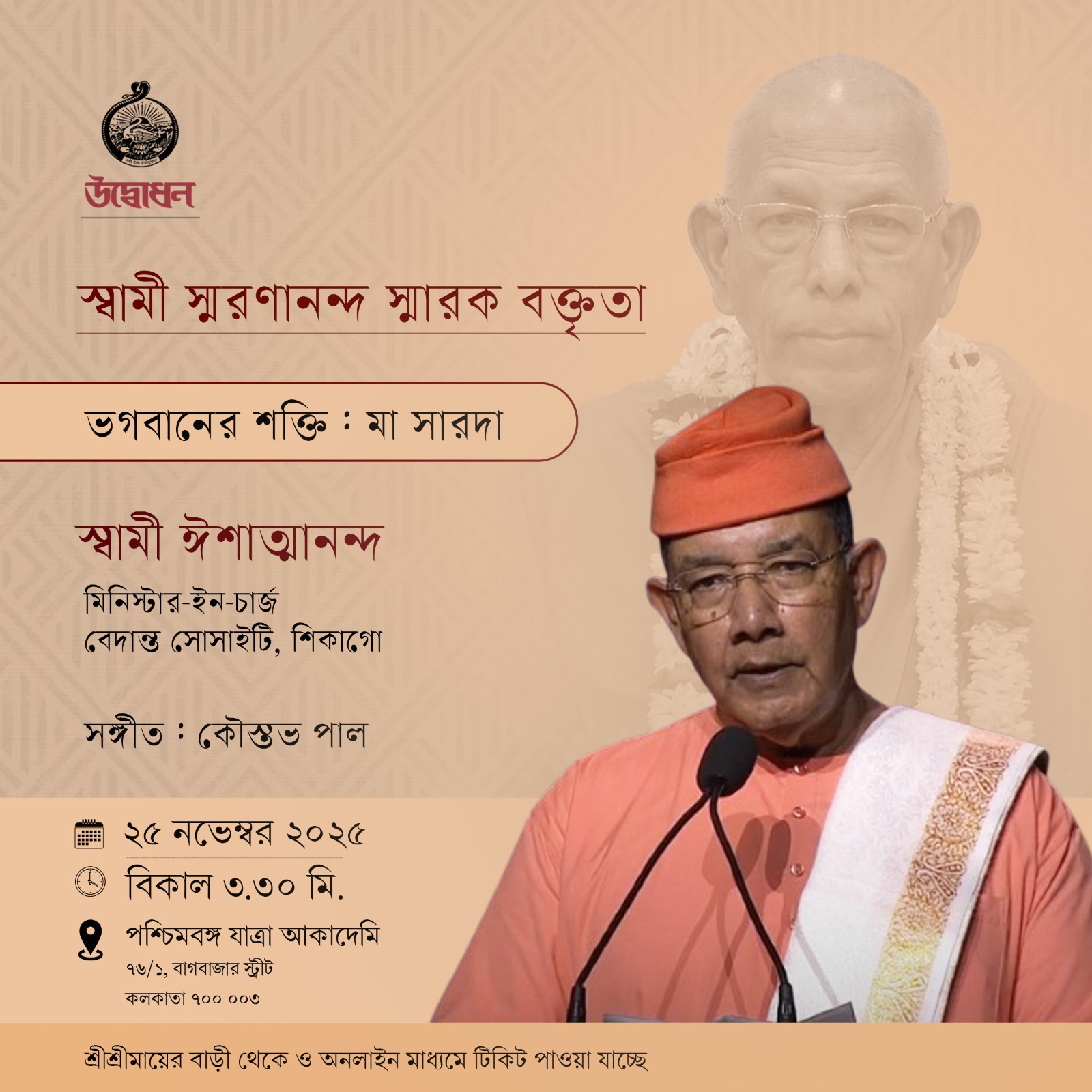 আগামী ২৫ নভেম্বর ‘স্বামী স্মরণানন্দ স্মারক বক্তৃতা’র স্থান পরিবর্তিত হয়েছে।পূর্বঘোষিত