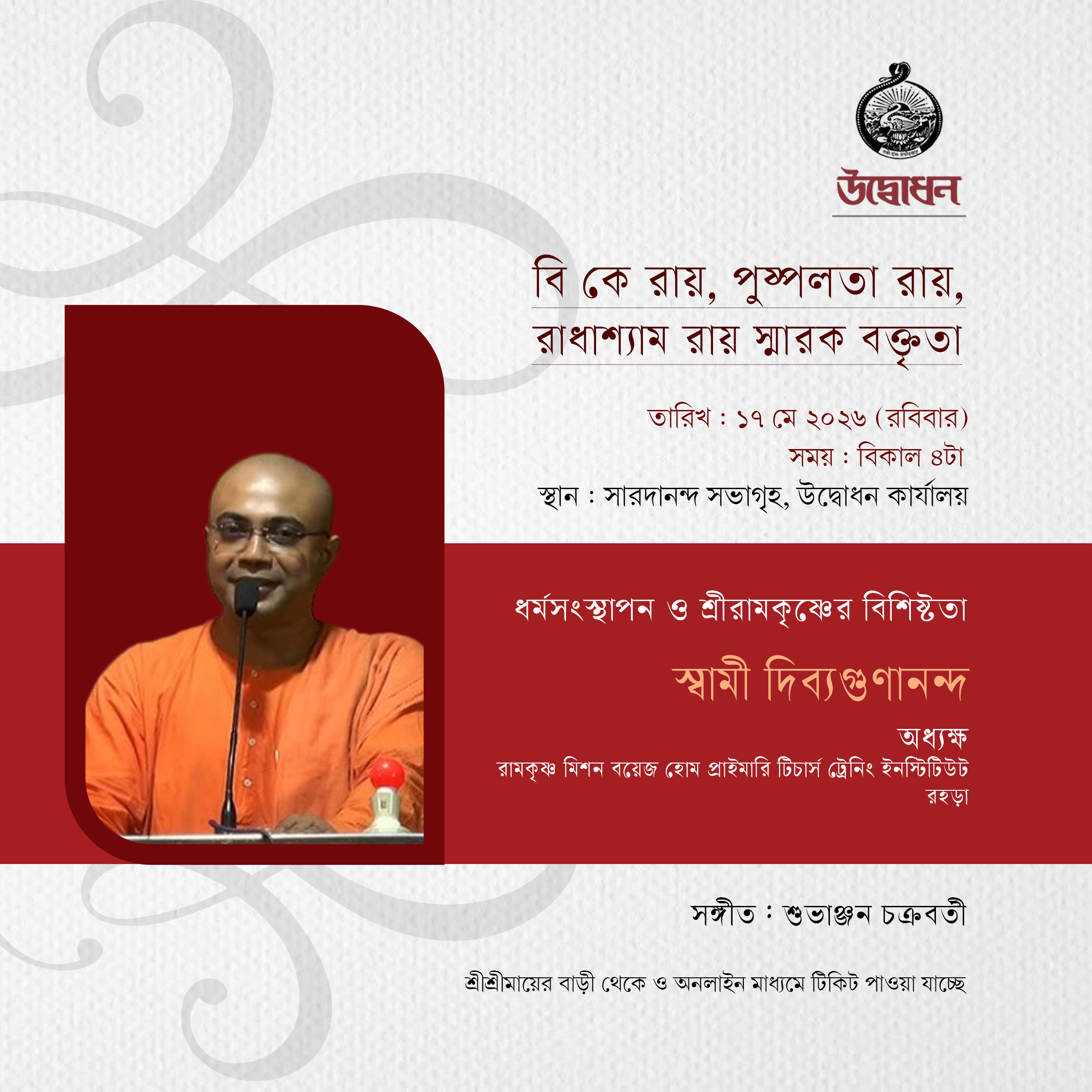 স্থান : সারদানন্দ সভাগৃহ, উদ্বোধন কার্যালয়